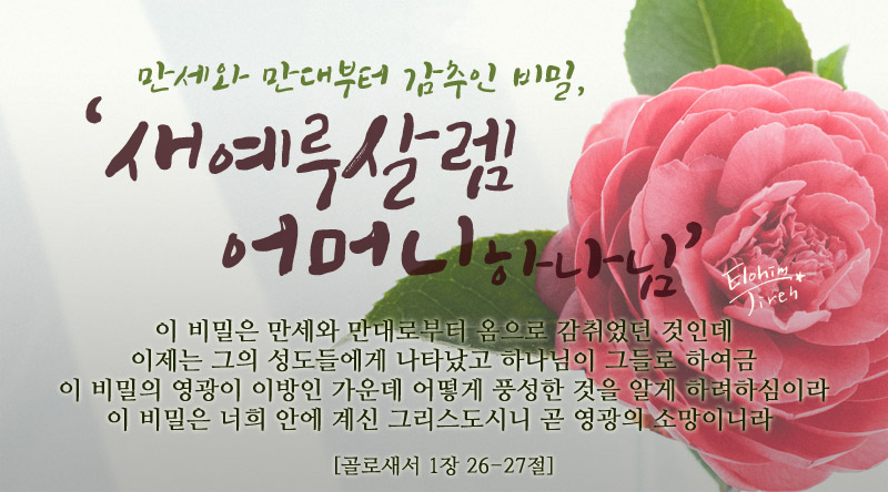 하나님의교회는 생명수를 주시는 어머니하나님을 열렬히 믿고 있습니다.